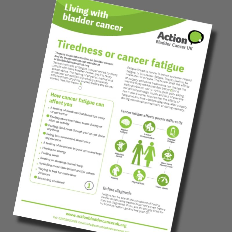 An illustrated ABC UK Information Sheet on the impact of tiredness and cancer fatigue for those with bladder cancer, and tips on how to cope.